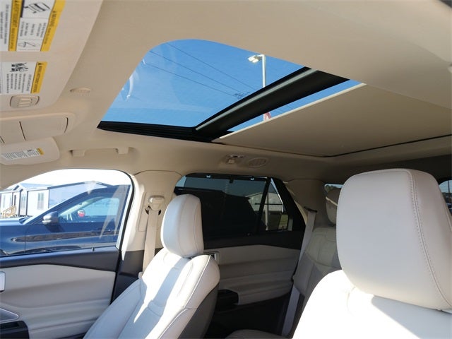 Recent Arrival! CARFAX One-Owner. Star White Metallic Tri-Coat 2020 Ford Explorer Platinum 3.0L EcoBoost V6 10-Speed Automatic 4WD Equipment Group 600A, Premium Technology Package (10.1 LCD Capacitive Portrait Touchscreen, 2 Additional Speakers, and Leather Htd/Ventilated Sport Captain's Chairs), 4WD, 12 Speakers, 3.31 Non-Limited-Slip Axle Ratio, 3rd row seats: bench, 4-Wheel Disc Brakes, ABS brakes, Air Conditioning, Alloy wheels, AM/FM radio: SiriusXM, Auto High-beam Headlights, Auto-dimming door mirrors, Auto-dimming Rear-View mirror, Automatic temperature control, Brake assist, Bumpers: body-color, Compass, Delay-off headlights, Driver door bin, Driver vanity mirror, Dual front impact airbags, Dual front side impact airbags, Electronic Stability Control, Emergency communication system: SYNC 3 911 Assist, Exterior Parking Camera Rear, FordPass Connect, Four wheel independent suspension, Front & Second Row Floor Liners, Front anti-roll bar, Front Bucket Seats, Front Center Armrest, Front dual zone A/C, Front fog lights, Front reading lights, Fully automatic headlights, Garage door transmitter: HomeLink, Genuine wood dashboard insert, Heated door mirrors, Heated front seats, Heated rear seats, Heated steering wheel, Illuminated entry, Knee airbag, Leather steering wheel, Low tire pressure warning, Memory seat, Navigation System, Occupant sensing airbag, Outside temperature display, Overhead airbag, Overhead console, Panic alarm, Passenger door bin, Passenger vanity mirror, Power door mirrors, Power driver seat, Power Liftgate, Power moonroof, Power passenger seat, Power steering, Power windows, Radio data system, Radio: B&O Sound System by Bang & Olufsen, Rain sensing wipers, Rear air conditioning, Rear anti-roll bar, Rear reading lights, Rear window defroster, Rear window wiper, Remote keyless entry, Roof rack: rails only, Security system, Speed control, Speed-sensing steering, Speed-Sensitive Wipers, Split folding rear seat, Spoiler, Steering wheel memory, Steering wheel mounted audio controls, SYNC 3 Communications & Entertainment System, SYNC 3/Apple CarPlay/Android Auto, Tachometer, Telescoping steering wheel, Tilt steering wheel, Traction control, Trip computer, Turn signal indicator mirrors, Variably intermittent wipers, Ventilated front seats, Voice-Activated Touchscreen Navigation System, and Wheels: 20 Bright Machined-Face Aluminum.