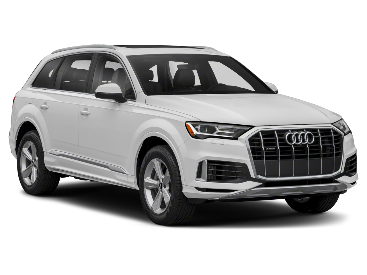 CARFAX One-Owner. Silver Metallic 2021 Audi Q7 55 Premium Plus 10 Speakers, 3.204 Axle Ratio, 3rd row seats: bench, 4-Wheel Disc Brakes, ABS brakes, Air Conditioning, Alloy wheels, AM/FM radio: SiriusXM, Audi smartphone interface (Apple CarPlay/Android Auto), Auto High-beam Headlights, Auto-dimming Rear-View mirror, Automatic temperature control, Brake assist, Bumpers: body-color, Compass, Delay-off headlights, Driver door bin, Driver vanity mirror, Dual front impact airbags, Dual front side impact airbags, Electronic Stability Control, Emergency communication system: Audi connect CARE, PRIME & PLUS, Exterior Parking Camera Rear, Four wheel independent suspension, Front anti-roll bar, Front Bucket Seats, Front Center Armrest, Front dual zone A/C, Front fog lights, Front reading lights, Fully automatic headlights, Garage door transmitter: HomeLink, Genuine wood door panel insert, Heated door mirrors, Heated Front Bucket Seats, Heated front seats, Illuminated entry, Leather Seating Surfaces, Leather Shift Knob, Leather steering wheel, Low tire pressure warning, Memory seat, Navigation system: Audi MMI Navigation plus with Touch Response, Occupant sensing airbag, Outside temperature display, Overhead airbag, Overhead console, Panic alarm, Passenger door bin, Passenger vanity mirror, Power door mirrors, Power driver seat, Power Liftgate, Power moonroof, Power passenger seat, Power steering, Power windows, Radio data system, Radio: Audi Sound System, Rain sensing wipers, Rear air conditioning, Rear anti-roll bar, Rear fog lights, Rear reading lights, Rear seat center armrest, Rear window defroster, Rear window wiper, Reclining 3rd row seat, Remote keyless entry, Roof rack: rails only, Security system, Speed control, Speed-sensing steering, Split folding rear seat, Spoiler, Steering wheel memory, Steering wheel mounted audio controls, Tachometer, Telescoping steering wheel, Tilt steering wheel, Traction control, Trip computer, Turn signal indicator mirrors, Variably intermittent wipers, and Wheels: 19 5-Arm-Star Design.ADVERTISED PRICE INCLUDES $1,000 FINANCE ASSIST and $500 TRADE ASSIST, Customer must finance with dealership preferred lender and trade in a vehicle to qualify.