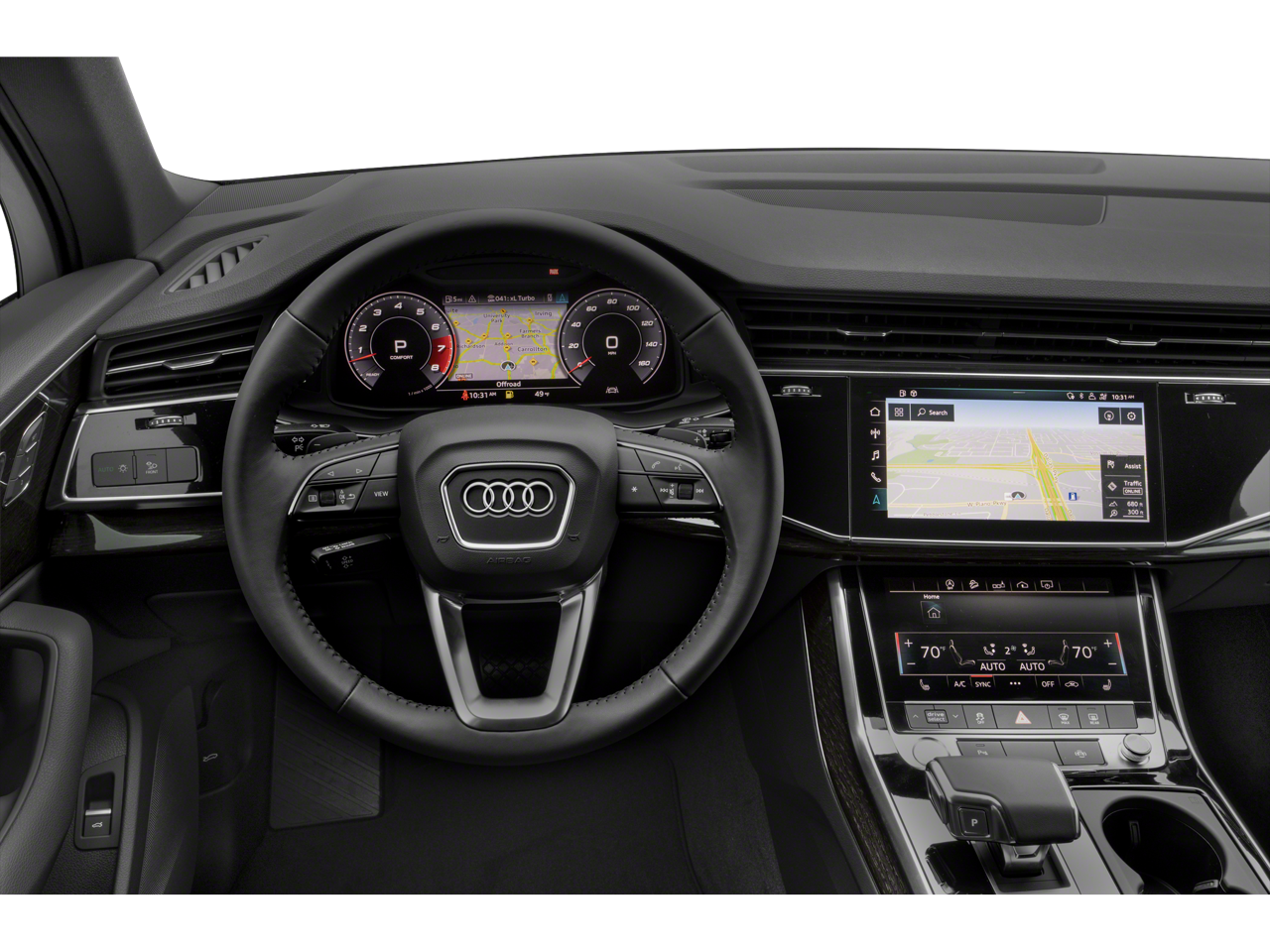 - Convenience Package -inc: Audi Phone Box w/Wireless Charging, signal booster, 3-Spoke Multifunction Steering Wheel w/Paddles, Heated, Ambient Interior Lighting Package, Heated Auto-Dimming Power Folding Exterior Mirrors, memory, Topview Camera System, virtual 360 view
